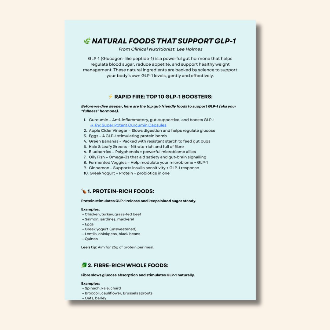 + Support natural GLP-1 production: Discover science-backed whole foods that help your body regulate blood sugar, reduce appetite, and support healthy weight management.